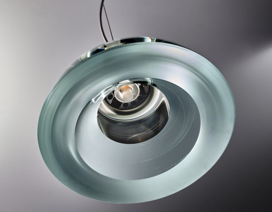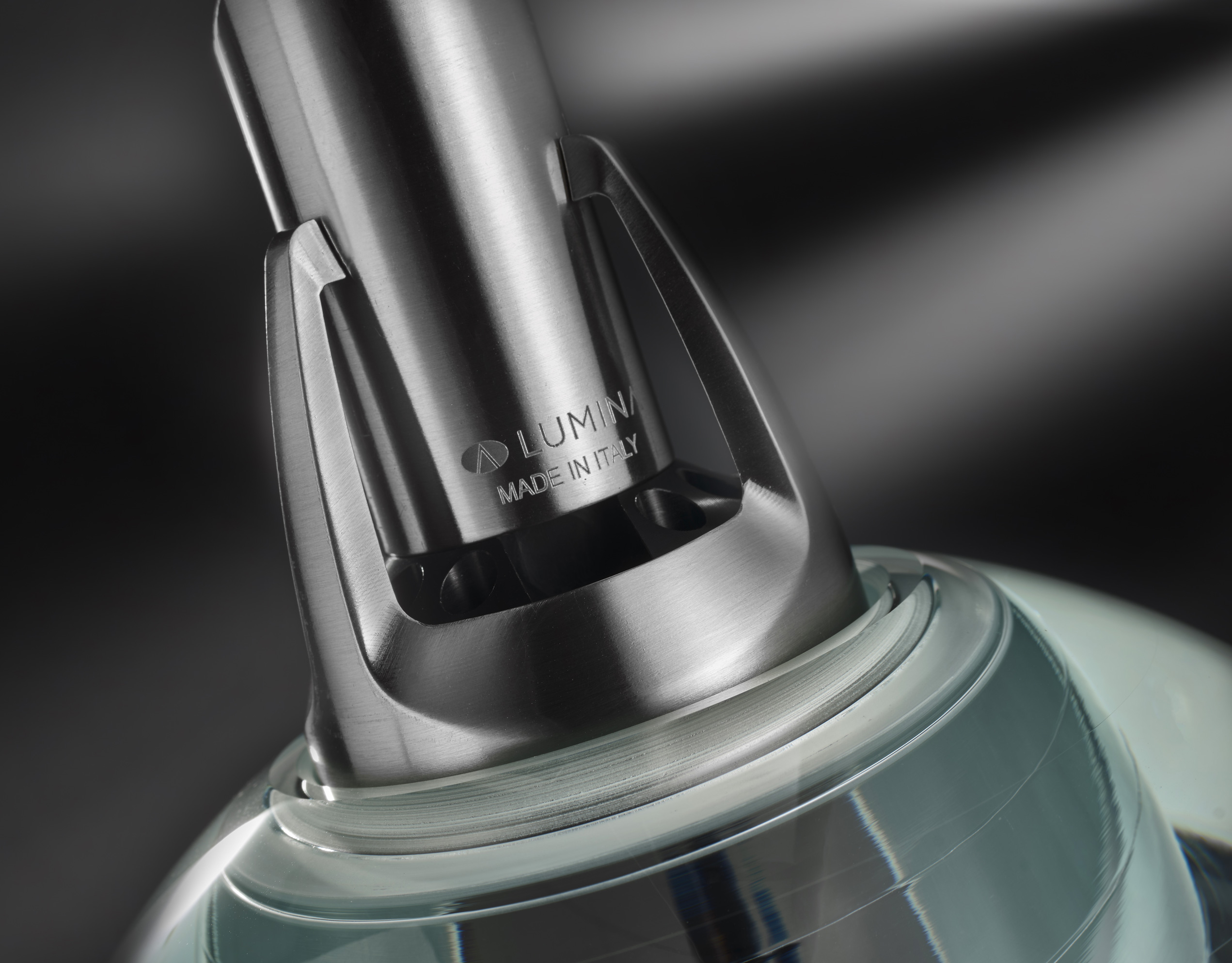Thanks to new technologies developed and designed for this purpose, we were able to obtain a diffuser identical to the original by milling a single block composed of several layers of glass glued together. A process that requires sophisticated equipment and many hours of milling and grinding to achieve a qualitatively perfect result. The glass then illuminated is transformed into a jewel of quality and magic, unparalleled on the market.